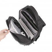There is a dedicated inner sleeve in the main compartment for your laptop, as well as a seperate iPad/tablet sleeve. This bag also features a zippered front pocket and two side pockets for basic organization of notes, documents and stationery. Lumbar padding doubles as a smuggler’s pocket for small items of value.