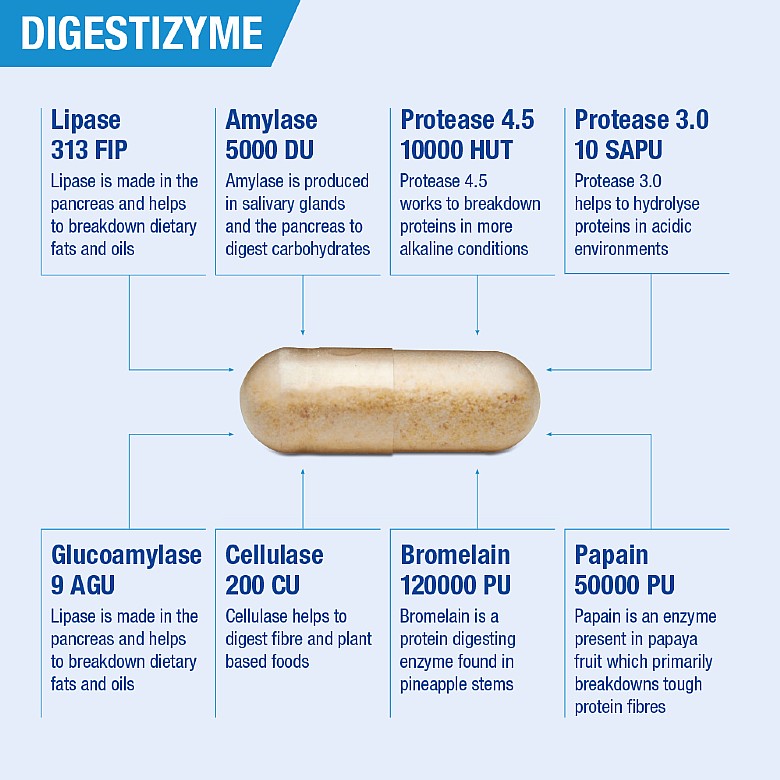 Digestizyme® provides a broad spectrum of plant-sourced enzymes, which digest protein, fat and carbohydrate and is one of the most popular products of its type in the UK.