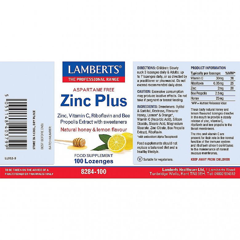 Lamberts Zinc Plus 100 Lozenges Supplement