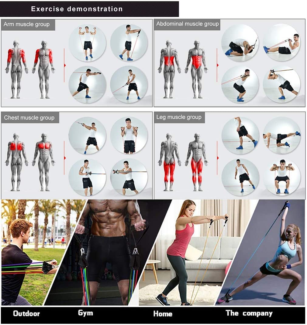 Fitness resistance bands, also known as exercise bands, fitness tubes, or resistance cords, are a great way to add variety to your strength training routine. Fitness Resistance bands are made from high-quality natural latex material to ensure maximum life, and each resistance band comes with 2 soft foam-covered handles for comfort during exercise. Therefore, Fitness Resistance bands are an excellent alternative to free weights, workout machines, and traditional bodyweight exercises.
