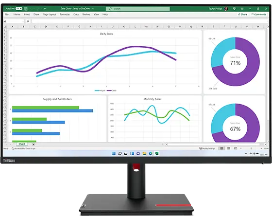 The ThinkVision T32h-30 Monitor is a digital canvas that supercharges your productivity effortlessly, making your best work look even more stunning and awe-inspiring. Sit back and let your finest work take shape on this generous 31.5-inch In-Plane Switching QHD screen, made even more expansive by a 3-side NearEdgeless design. Work on the finer details effortlessly with the incredible picture quality afforded by its 99% sRGB color gamut that works to give you a visual experience that’s rich, sharp, vibrant, and true to life. Manage multiple files side-by-side, compare images and data sheets, switch between windows, and exhibit your work proudly on this wider-than-ever In-Plane Switching screen that affords uniform picture quality irrespective of viewing angle. Want more room to work your magic? Then hook it up in a multi-monitor setup. Can’t get your eyes off the monitor because of its dazzling display and your heavy workload? No problem! Your eyes are protected with the ThinkVision T32h-30 Monitor’s Natural Low Blue Light technology that cuts out harmful blue light emissions without compromising color fidelity. Connect, share, surf, and supercharge your multimedia experiences with USB Type-C1, HDMI, DP, and RJ45 ports. Take it up a notch with the monitor’s modular camera and soundbar support for superlative video conferencing quality. Work on the fast lane, plug in, and power up swiftly with the USB-C1 PD 90W port. Beefed up with a Smart Power function for dynamic power distribution with connected devices, that lowers energy power consumption while boosting performance. You might be tempted to spend long hours in front of a monitor this fast and fabulous but you won’t feel the strain on your back and neck as it tilts, swivels, pivots, and lifts to conform to your optimal viewing and seating position. You can also VESA mount the monitor to a wall and save precious desktop space for more important things. If you’re particular about being environmentally conscious, then rest easy, because the ThinkVision T32h-30 Monitor adheres to the most stringent TCO 9.0 regulations and comes in green packaging. All-in-all, the ThinkVision T32h-30 Monitor packs in incredible display clarity and rich colors along with all the ports you need to make your work move fast and look fabulous.