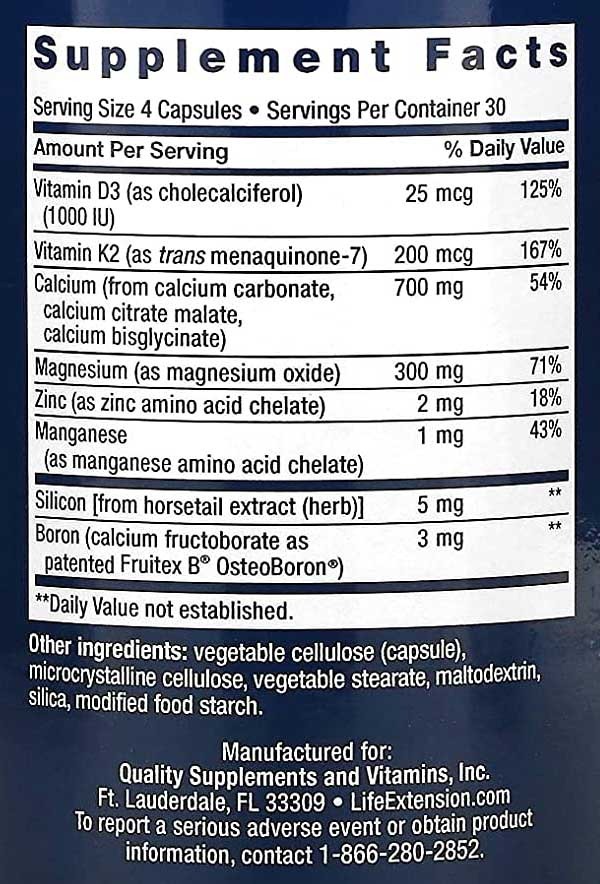 Life Extension Bone Restore with Vitamin K2 120Capsules Supplement