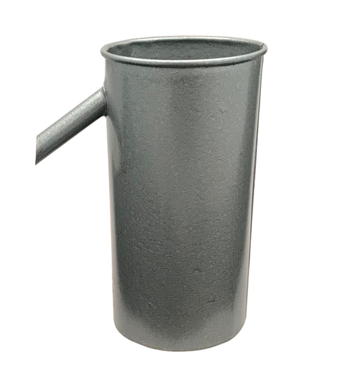 Has a spout to drain out overflowing liquids, used in laboratory for measuring displacement of liquids.