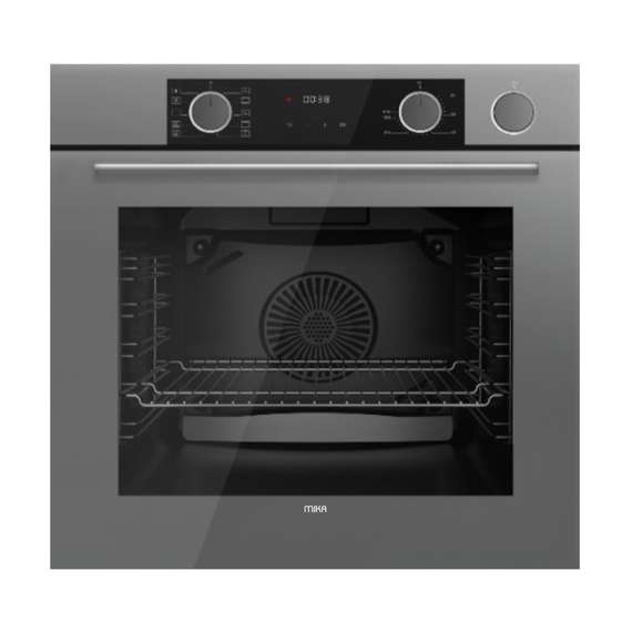 MIKA Built In Oven, 60cm, 73L, Steam Art & Fry Art (Air Frier), Convection (Turbo) Fan Oven, 10 Functions, Digital Display Timer, with Grill, Pop Up Knob, Grey Glass Finish