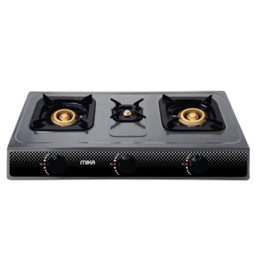MIKA Gas Stove, Non-Stick, Tripple Burner, Black