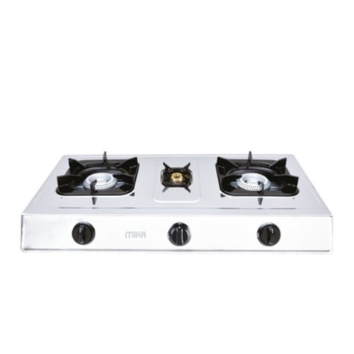 MIKA Gas Stove, Stainless Steel, Triple Burner, Inox