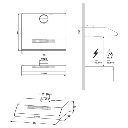 Mika MHC601BB 60cm Under Cabinet Cassette Hood