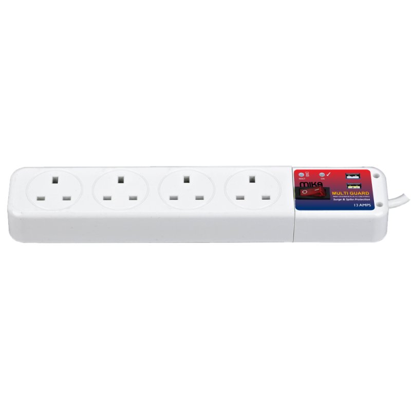 Multi Guard, 4 Way, with USB & Switch, Extension Plug 13 Amps