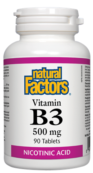 Natural Factors Vitamin B3 contains vitamin B3 in the nicotinic acid form, which has been shown to be the most effective form for its positive impact on the cardiovascular system. Convenient tablets containing 500 mg of nicotinic acid supply this water-soluble vitamin for the maintenance of overall good health.