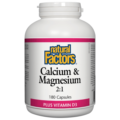 Natural Factors Calcium &Magnesium 2:1 Plus Vitamin D3 contains essential nutrients for the maintenance of good health and for the normal development and maintenance of healthy bones and teeth. This formulation contains the perfect mineral ratio for stronger bone calcification plus vitamin D for superior mineral absorption and utilization.