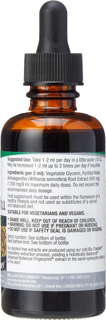 Discover the power of Ashwagandha, a revered adaptogenic herb that has been used for centuries in traditional Ayurvedic medicine. Nature's Answer presents Ashwagandha Root Extract, a premium herbal supplement designed to help you achieve optimal well-being and balance in a convenient 60ml liquid form.