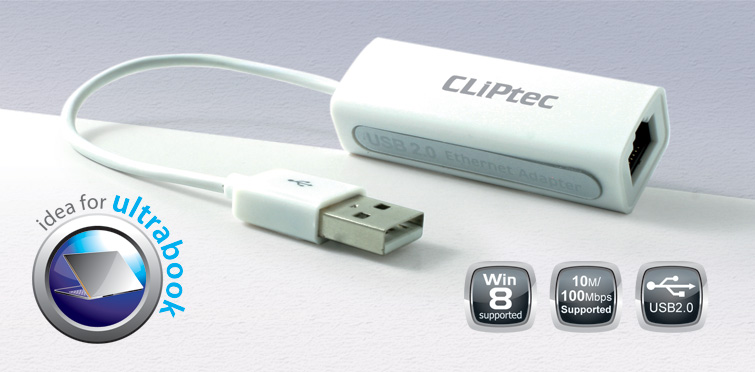 CLiPtec OCB480 is a Hi-Speed Ethernet Adapter specifically designed to plug into an available Universal Serial Bus (USB) port on a Ultrabook laptop or PC. The OCB480 extends the transfer speed of earlier USB Fast Ethernet adapters to true 10/100Mbps connectivity. CLiPtec OCB480 USB 2.0 Hi-Speed Ethernet Adapter provides a standard LAN port RJ-45 for a quick and simple method of connecting to an Ethernet 10Mbps or Fast Ethernet 100Mbps based LAN via a network hub or switch. The built-in USB 2.0 cable connects directly to your computer or laptop.