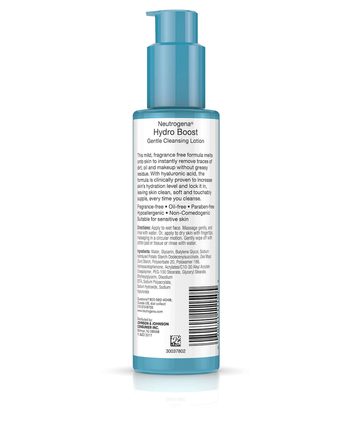 Day or night. Wet or dry. Neutrogena Hydro Boost Gentle Face Cleansing Lotion’s hyaluronic acid and Barriercare® cleansing technology cleanses AND hydrates in 1 step. Clinically proven to boost skin’s hydration levels, it’s fragrance-free, paraben-free, and non-comedogenic [oil-free].
