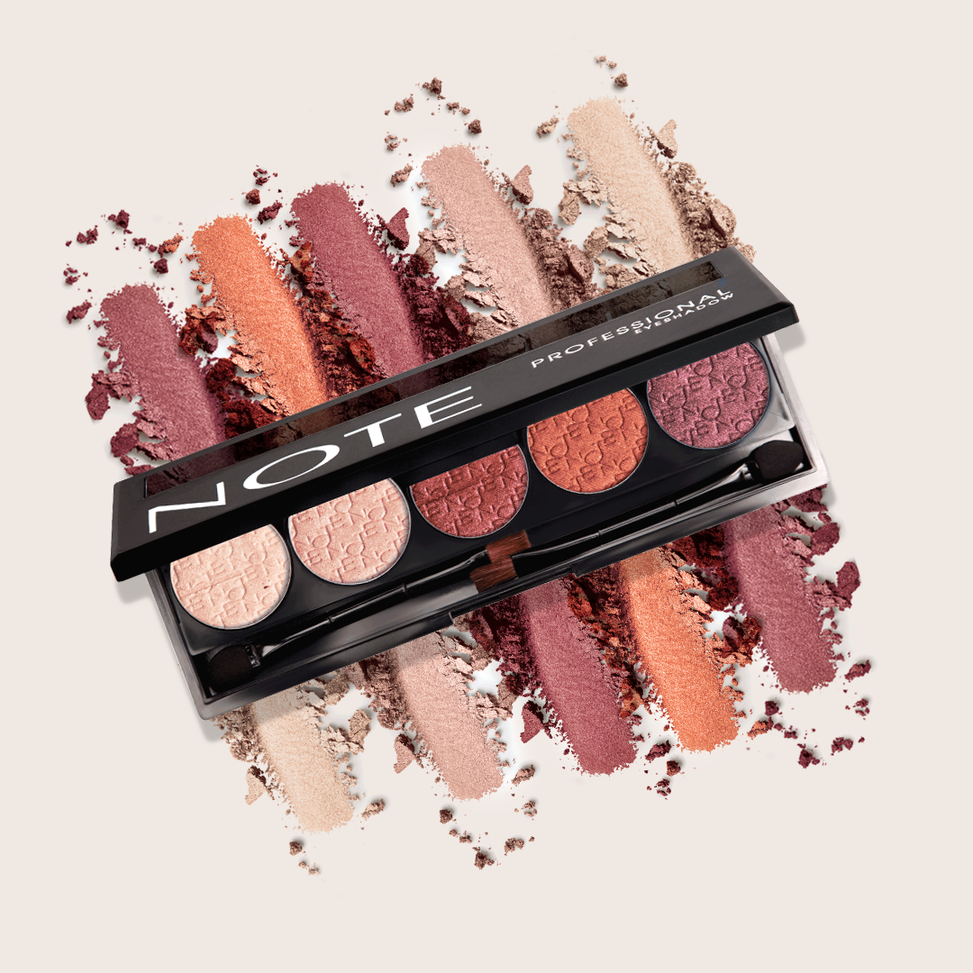 Each palette collection of colours in Note Professional Eyeshadow Palette boasts 5 multi-finish shades in matte, satin velvety to glitter and shiny for natural or sophisticated looks. The texture glides on smoothly to deliver rich colour and buildable intensity. Shades are enhanced with vitamin E known to prevent moisture loss and protect against dryness. Suitable for wet and dry use.