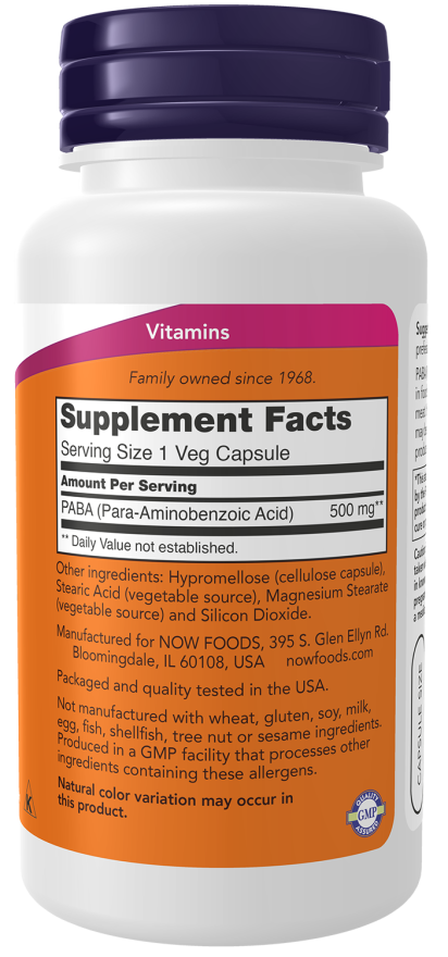For adults only. PABA should not be taken when using sulfonamide (sulfa) drugs or in known PABA allergy. Consult physician if pregnant/nursing, taking medication, or have a medical condition including liver and renal disease. Keep out of reach of children.