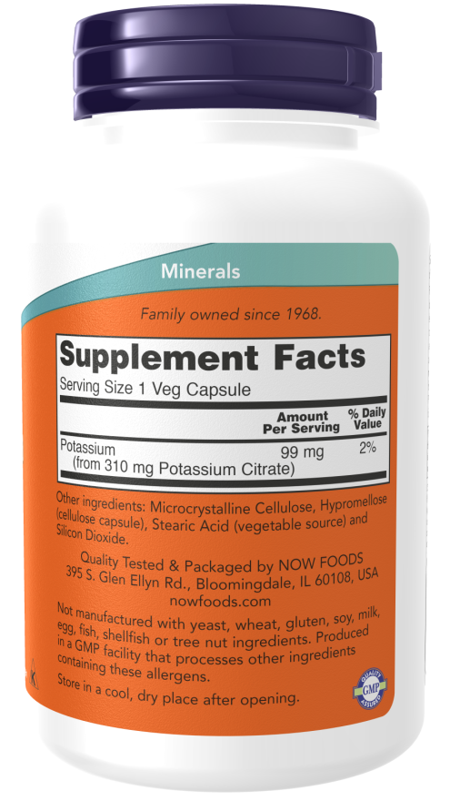 Now 99mg Potassium Citrate 180Capsules Supplement
