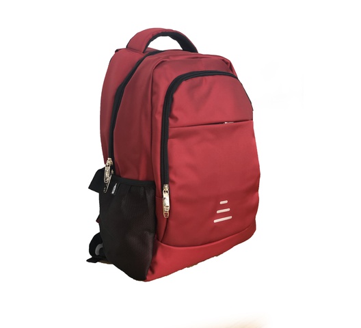 This laptop bag comes in red and silver strip lines designed front the of the bag.