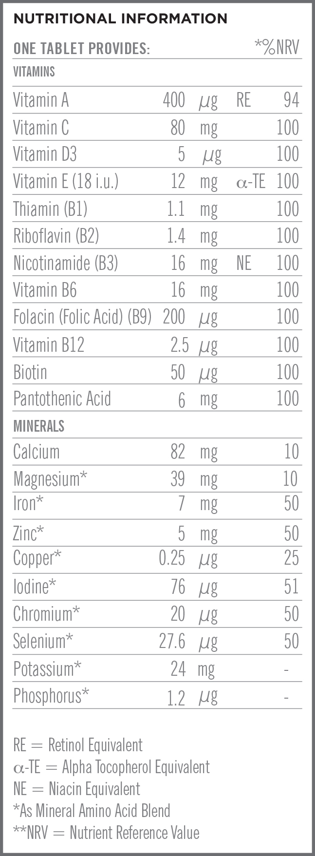 One tablet daily with or after food.