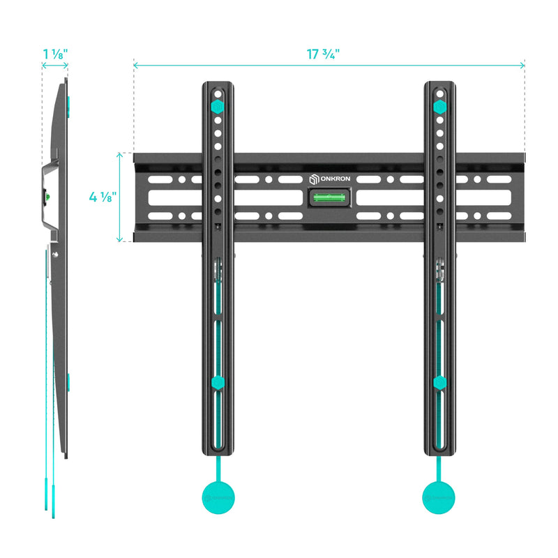Fixed TV Wall Mount for 32" to 65-inch TVs Screens up to 110 lbs ONKRON FM2, Black