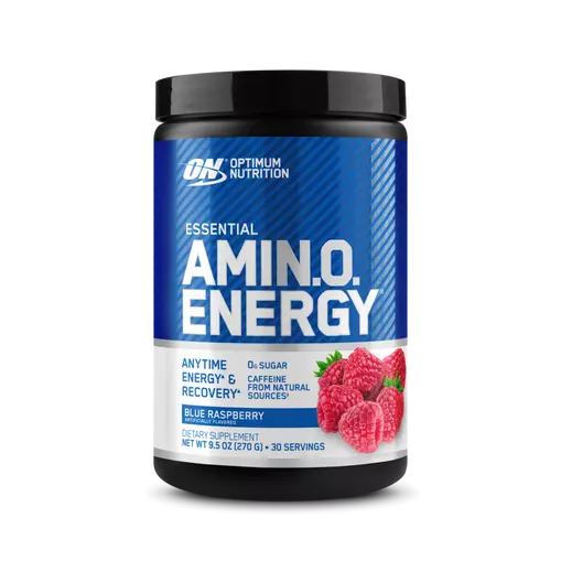 Essential AMIN.O. ENERGY powder mix supports energy1 with 100mg of caffeine from natural sources per serving* and post-workout muscle recovery1 with 5g of amino acids per serving. It’s formulated for active people at every level of fitness who want a mild pre-workout energy boost or to maintain energy during physical activity1.