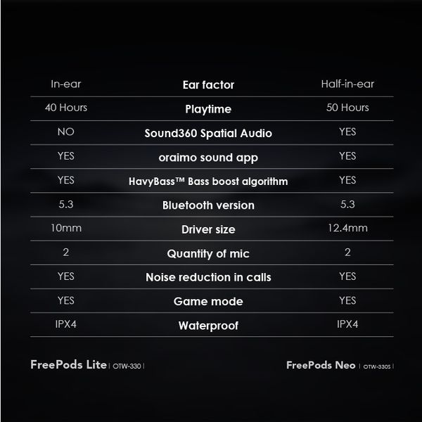 Dive into your favorite tunes without the squeeze! oraimo half-in-Ear FreePods Neo delivers stellar sound quality and superior comfort, turning every listening session into bliss.