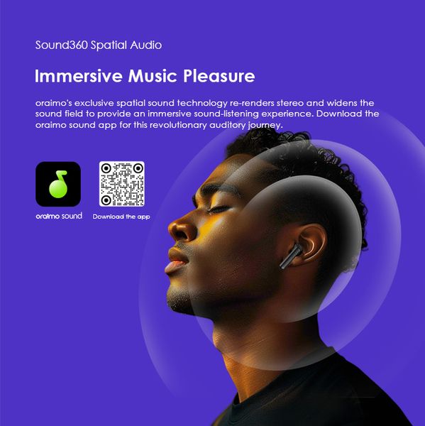 oraimo's exclusive spatial sound technology re-renders stereo and wides the sound field to provide an immersive sound-listening experience. Download the oraimo sound app for this revolutionary auditory journey.