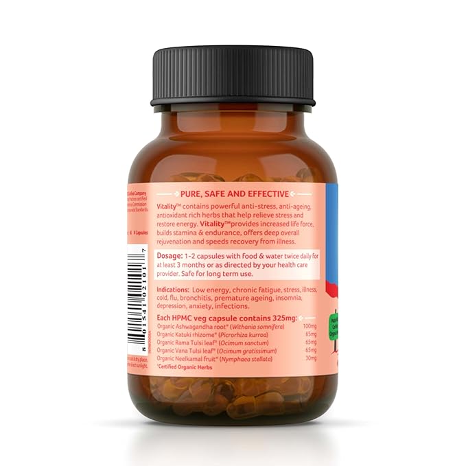 Vitality is a combination of powerful anti - stress / adaptogenic agents as energizer and immunobooster. It is used for prevention and adaptation against the day-to-day stresses of life. It protects against viral and other infections, relieves chronic fatigue syndrome, exhaustion & general debility. It also helps fight signs of ageing and is effective in treatment of stress related disorders.