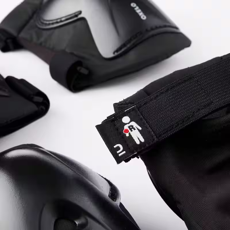Wear the wrist protector with the plastic shell over the palm of your hand. There are right (R) and left (L) markers on each wrist guard. So skating will help your child learn their left and right!