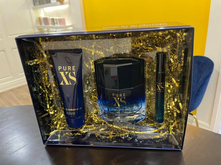 The Pure XS fragrance set from Paco Rabanne. It consists of 100ml eau de toilette, 10ml miniature eau de toilette and 100ml Aftershave.
