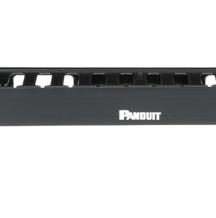 The Panduit® PatchLink® Horizontal Cable Manager manages category 5e and 6 copper, fiber optic and coaxial cables on the front and rear of any standard 19in (483mm) EIA rack or cabinet. Flexible fingers not only provide a safe integral bend radius but simplify adds, moves and changes for an easy-to-maintain finished, professional finish. Front Only Cover, ABS, 1RU, Black, 1pc, Black.