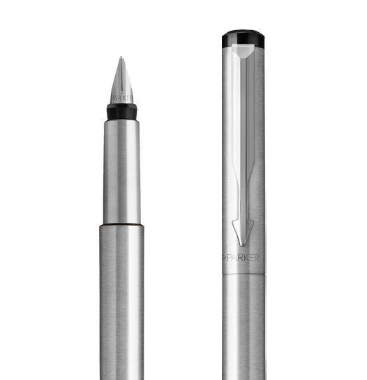 There are some things we need to rely on every day. Vector is a pen to count on for PARKER craftsmanship, guaranteed. Parker Vector Stainless Steel Fountain Pen is ideal as a gift for everyone on all kinds of occasions like birthdays or as a Parker Christmas gift. This product is perfect for all companies who wants to give Parker gifts for their employees, partners or investors. Once you feel the grace and fluidity in writing of this product you can get Rollerball and Ballpoint matching to the set. This Parker Fountain Pen can be refilled with every Parker Ink cartridges or by Parker Ink in bottle. In stainless steel with a mineral metallic lustre finishes with high-shine stainless steel trims. Nib in stainless steel for superior resistance and durability. Designed to provide an optimal writing angle for both right- and left-handed writers.