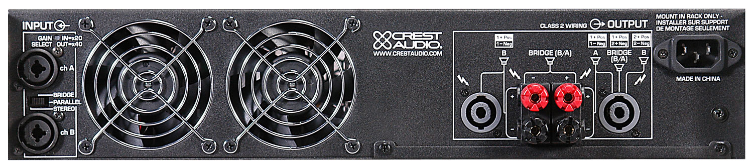 Crest Audio® CC™ Series amplifiers are designed to achieve unsurpassed sonic performance and long-term reliability under extreme stress in touring or fixed installation applications. Absolute sonic accuracy is the hallmark of every Crest amplifier. Bass is solid and defined to the limits of audibility with ample current reserves. Wide-bandwidth output devices ensure detailed, transparent high frequency response. And, thanks to Crest’s exclusive IGM™ circuit, the CC Series will drive 2 Ω loads safely without compromising performance.