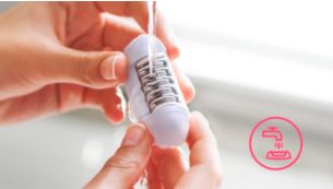 This epilator has a washable epilation head. The head can be detached and cleaned under running water for better hygiene