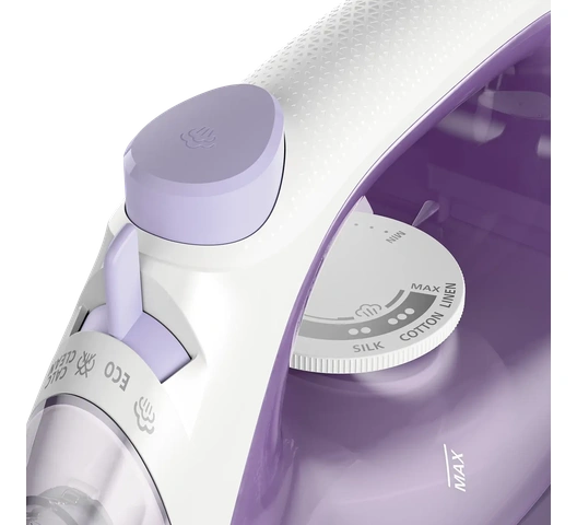 Non-Stick Soleplate Coating: Glide smoothly over any fabric with the non-stick soleplate coating.