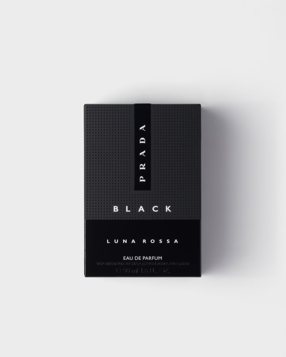 Prada Black starts with vivacious notes of Bergamot and Angelica, arriving at the sweetness of Amber Wood passing through the intensity of Coumarin and Patchouli.---Even the completely opaque bottle, where the iconic red line was replaced for the very first time by a black one, denotes the strength and intensity of this new Eau de Parfum.