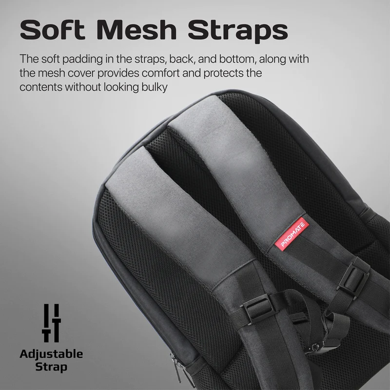 SATCHEL-BP.BLACK Promate 15.6" Laptop Backpack made from 300D Frosted Polyester with 1 main compartment, 2 front pockets