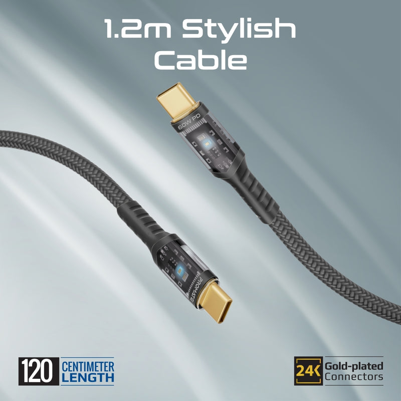 Promate 25W Power Delivery Dual Port Adapter Combo with 60W USB-C Cable • Quick Charge 3.0 Port • Automatic Voltage Regulation • Over-charging & short-circuit protection.