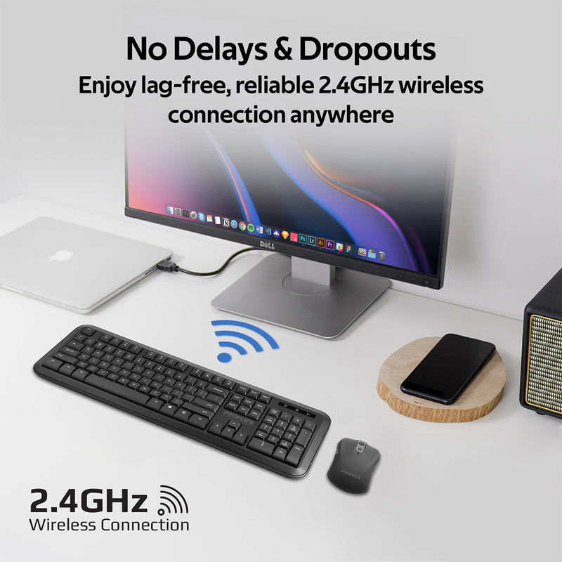 ProCombo-6 is the ultimate wireless keyboard and mouse combo you were looking for. With ultra-precise mouse with adjustable DPI up to 1600 DPI and a soft touch keyboard, enjoy working anywhere without any limitations of wires. The 2.4 GHz wireless connectivity with a 2-in-1 USB-A/USB-C dongle for added convenience. The ergonomic design doesn’t cause fatigue even after long-time usage. The combo also features a auto-sleep function for saving the battery when mouse or keyboard are in idle state.
