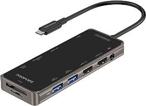 Promate 11 in 1 USB-C Hub with 100W PD, 4K HDMI, 1080p VGA, Dual Display Support, 1Gbps LAN, SD/TF, AUX, USB-C Data, USB3.0 & USB 2.0 Ports