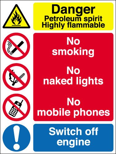 Pump Island Safety Signage – For fueling stations. Made on a luminous material on a Forex board. A3 Size.
