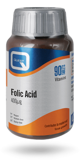 Folate (folic acid) contributes to maternal tissue growth during pregnancy to reduce the risk of neural tube defects and has a role in body cell division and blood formation. Supplemental folic acid intake increases maternal folate status. Low maternal folate status is a risk factor in the development of neural tube defects in the developing fetus. It also supports immune function and may help reduce tiredness and fatigue. Women who are planning or in the early stages of pregnancy, are advised to take 400mcg of folic acid as a supplement daily to ensure a dietary intake.