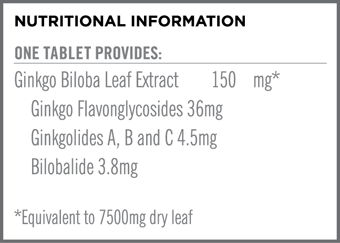 - 150mg ginkgo biloba leaf extract per tablet