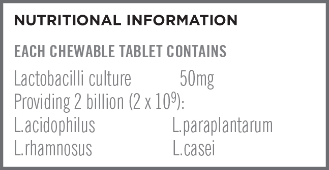 One to two chewable tablets daily with or after a meal. Suitable from 3 years of age.