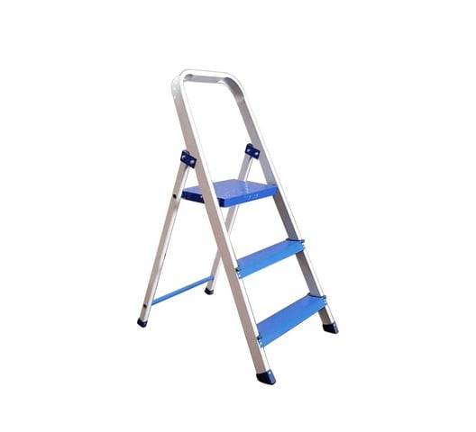 A sturdy and foldable aluminium ladder with elegant blue powder coating, 13" X 10" platforms.