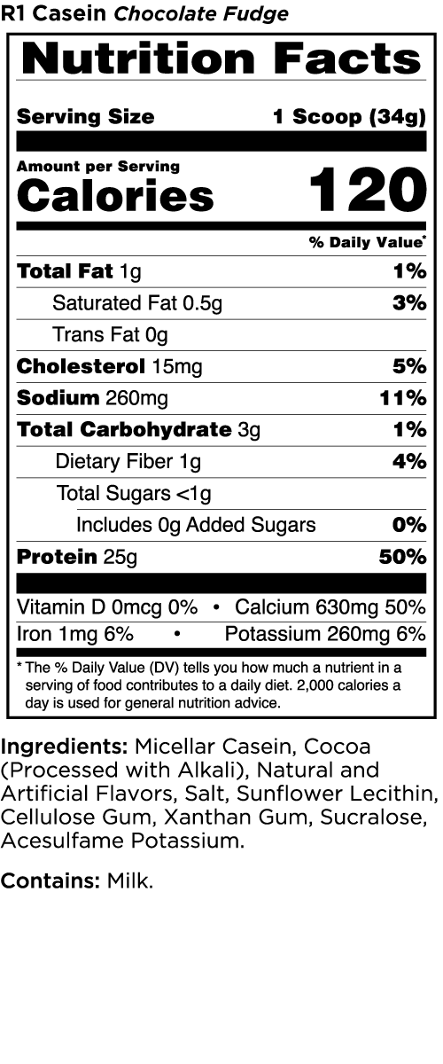 - Made with 100% micellar casein protein