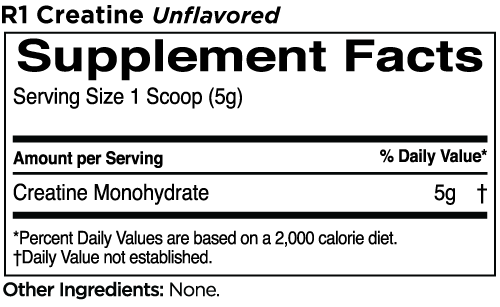 R1 Creatine is micronized and unflavored to stay suspended longer and blend easily into protein shakes or workout supplements to further enhance the benefits.^