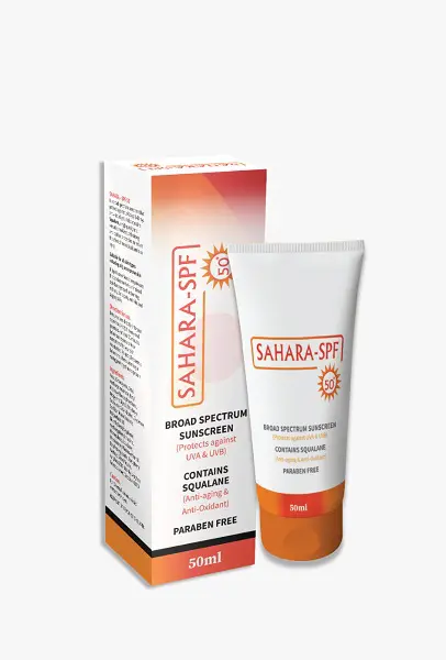 SAHARA SPF 50 Is a broad-spectrum water-resistant moisturising sunscreen that protects against UVA rays, UVB rays and visible light with NO WHITE cast. It contains Squalene and Vitamin E; high quality and versatile emollients with strong anti-oxidant, anti-aging properties, to reduce the effect of free radicals and skin aging.