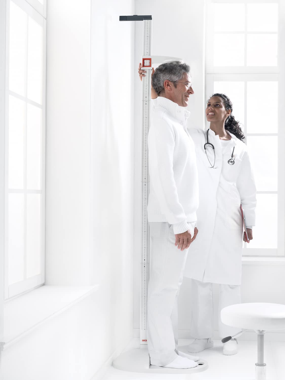 At only 2.4 kg (5,3 lbs), the seca 213 mobile stadiometer is especially suitable for use in the field but also ideal for doctors’ practices and pediatric hospitals. The measuring rod can be dismantled into several pieces and set up easily and quickly. The spacer keeps the rod straight and stable without any fittings. As the scale is printed along the side of the measuring rod, it is easy to read off the result while measuring, thus guaranteeing precise results – up to a height of 205 cm (81 inch).