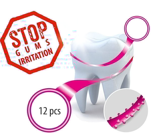 Innovative floss Simply Travel Silicone Floss made of soft silicone is gentle to the gums and doesn’t cause irritation or bleeding. Thanks to its extra flexibility, it adjusts its thickness to the interdental. Specially designed bumps give the gums a delicate massage. Rings on both ends allow easy, comfortable and painless use.