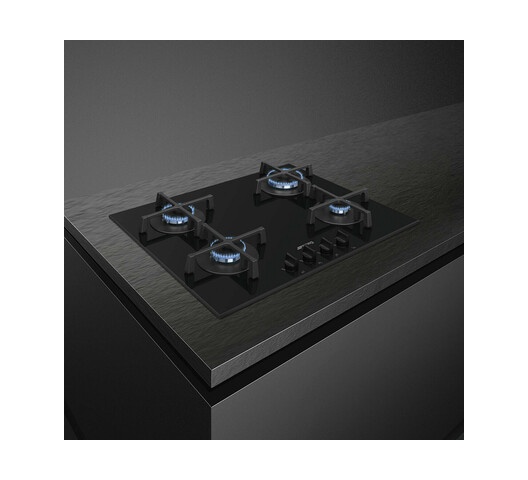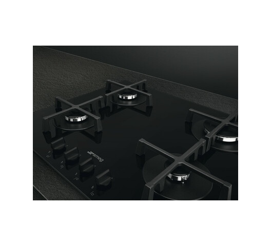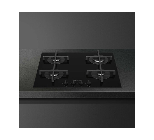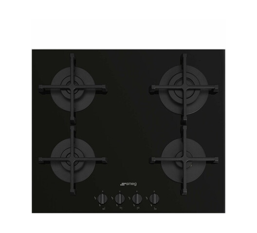 SMEG PV264B 4 Gas Built In HOB, Black Glass Cast Iron - 60CM